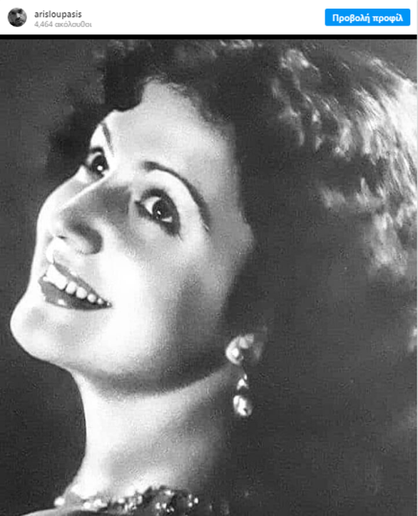 Στην ανάρτηση της φωτογραφίας από τον Άρη Λουπάση διαβάζουμε: «Υπέροχο πορτρέτο της Ρένας Βλαχοπούλου αρχές του ’40, στα πρώτα χρόνια των επιτυχιών της στο χώρο της μουσικής. Στα δέκα έξι της ασχολείται για πρώτη φορά με το τραγούδι, με την συνοδεία μικρής ορχήστρας σε ζαχαροπλαστείο στην Σπιανάδα της Κέρκυρας. Καλοκαίρι του ’38 γνωρίζει στον συγκεκριμένο χώρο τον γοητευτικό ποδοσφαιριστή της ΑΕΚ Κώστα Βασιλείου, μια γνωριμία η οποία εξελίσσεται σε ένα μεγάλο έρωτα και ένα χρόνο μετά σε γάμο.