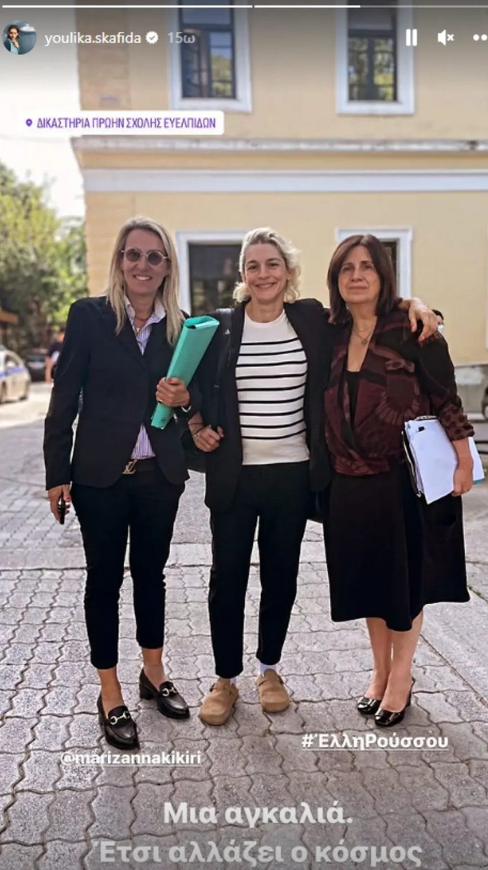 Στα δικαστήρια στην Ευελπίδων βρέθηκε ξανά η Γιούλικα Σκαφιδά, κάνοντας μια νέα ανάρτηση με τις δύο δικηγόρους της που τις προσέλαβε έναν χρόνο πριν, όταν έπεσε θύμα ξυλοδαρμού.