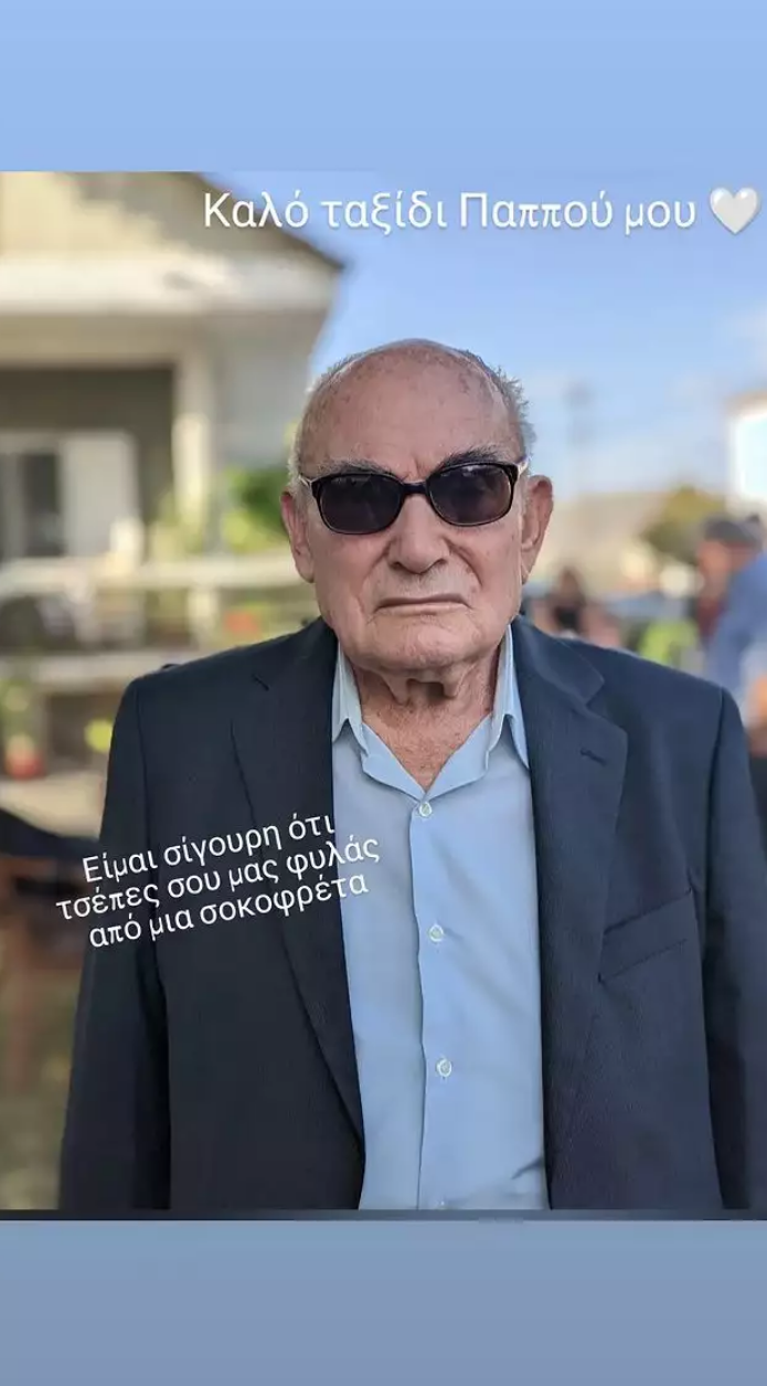 Τη δυσάρεστη είδηση θανάτου του παππού της, ανακοίνωσε η ίδια η ηθοποιός μέσω ανάρτησης που έκανε στον λογαριασμό της στο Instagram. Πιο συγκεκριμένα, η Γωγώ Καρτσανά, δημοσίευσε μια φωτογραφία του παππού της και έγραψε: