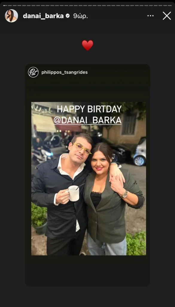 Να θυμίσουμε ότι πριν από μερικές εβδομάδες, ο Φίλιππος Τσαγκρίδης βρέθηκε στο μεγάλο πάρτι που διοργάνωσε η Δανάη Μπάρκα για τα γενέθλιά της, ενώ νωρίτερα, ο εφοπλιστής είχε ποστάρει στιγμιότυπο στο οποίο ποζάρουν αγκαλιά!