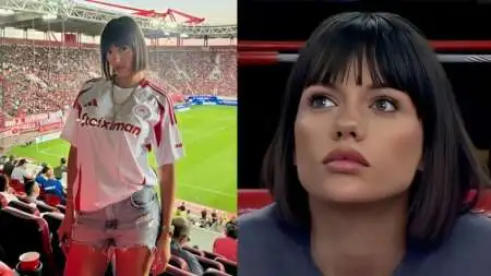 Το μοντέλο από το Κόσοβο, πήγε να δει το παιχνίδι του Ολυμπιακού με τη Βιλερμάν, την έπιασε η κάμερα της NOVA στην εξέδρα και έγινε viral «στη στιγμή».