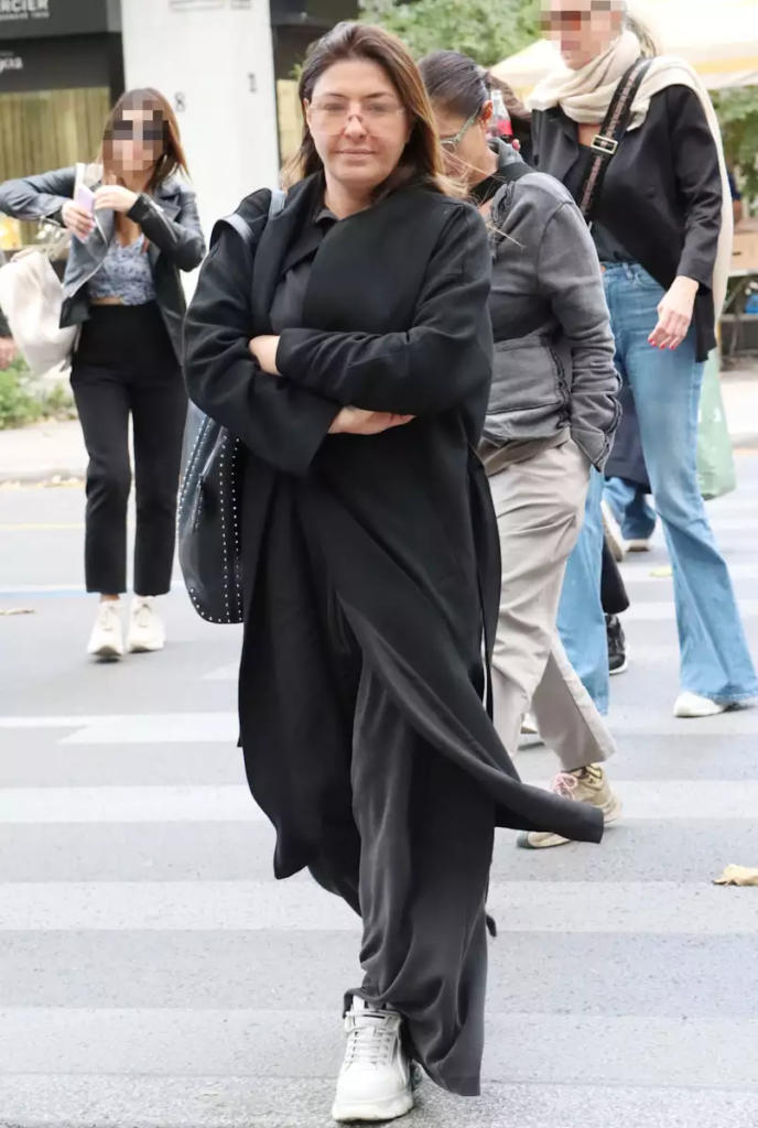 Ντυμένη στα μαύρα, άβαφη και με τεράστια γυαλιά
