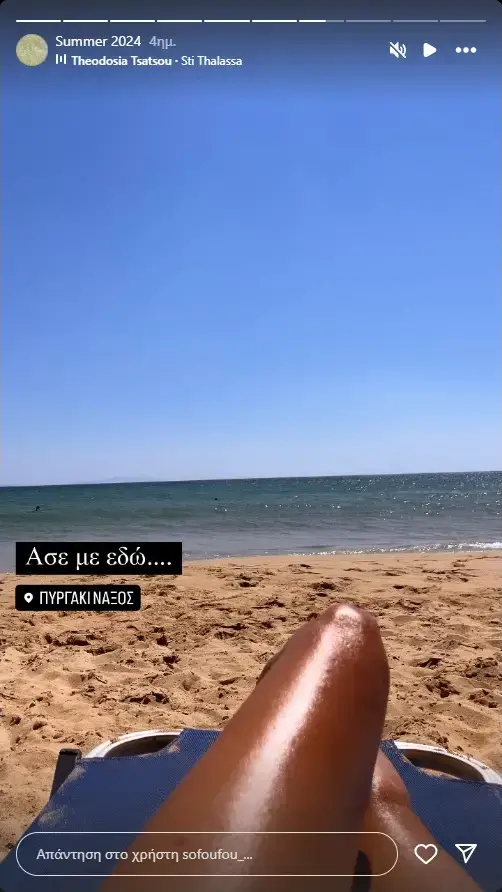 «Άσε με εδώ» έγραψε στη λεζάντα μιας φωτογραφίας, εκφράζοντας την αγάπη της για τη θάλασσα και τον ήλιο.