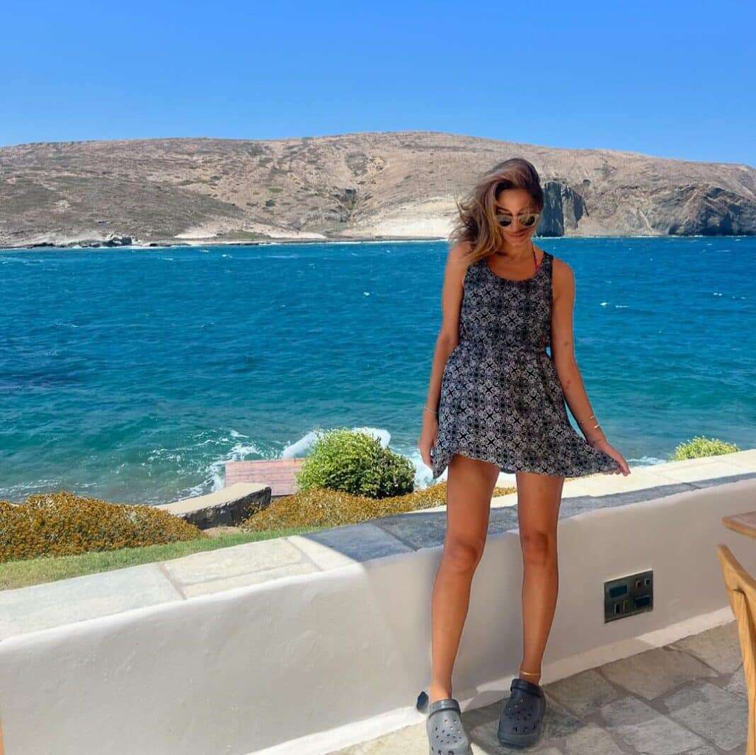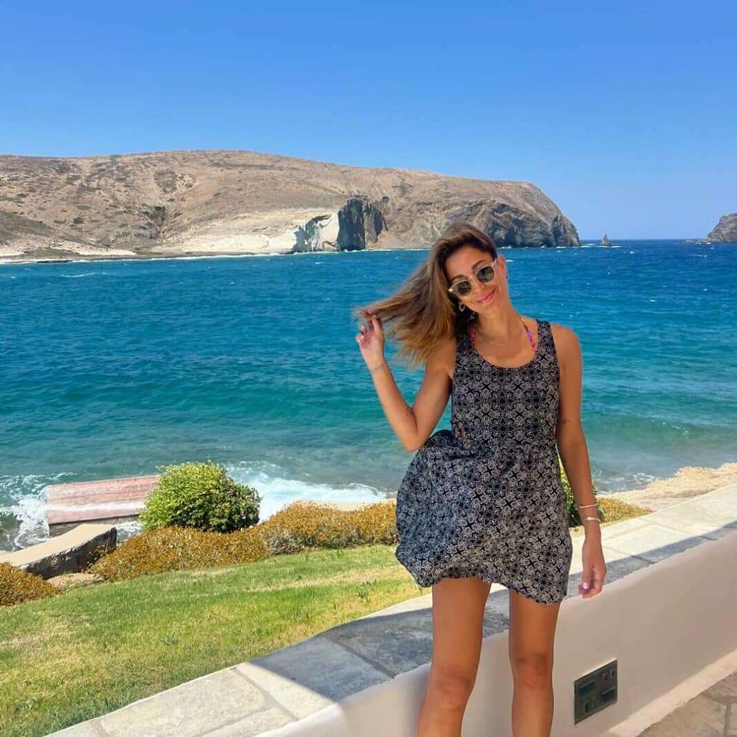 Στη διάρκεια της παραμονής της, η Παπουτσάκη έχει μοιραστεί με τους διαδικτυακούς της φίλους φωτογραφίες που εντυπωσιάζουν και αποδεικνύουν την εντυπωσιακή ομορφιά του νησιού.