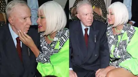 Καθισμένοι ο ένας δίπλα στον άλλο, ο 83χρονος νομικός και η Τζόρτζια Σιακαβάρα απαθανατίστηκαν να παρακολουθούν το fashion show, χωρίς να λείπουν οι τρυφερές στιγμές ανάμεσά τους.