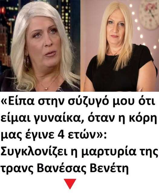 Η Βανεσα Βενέτη μια τρανς γυναίκα 49 ετών που ζει στην Αθήνα και εργάζεται ως αισθητικός άκρων βρίσκεται στην τελική ευθεία επιβεβαίωσης του φύλου της με χειρουργική διαδικασία. Η ίδια μίλησε για την προσπάθειά της, αλλά και τις σχέσεις με την πρώην σύζυγό της που έχουν αποκατασταθεί στην εκπομπή «Super Κατερίνα».
