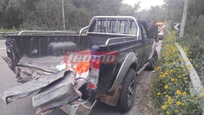 Λίγο αργότερα, αστυνομικοί εντόπισαν το κλεμμένο αγροτικό κοντά στο Βουπράσιο και το καταδίωξαν. Στη διάρκεια της καταδίωξης, σημειώθηκε σύγκρουση μεταξύ του οχήματος των δραστών και ενός περιπολικού, το οποίο εξετράπη της πορείας του, χωρίς ευτυχώς να τραυματιστεί κανείς.