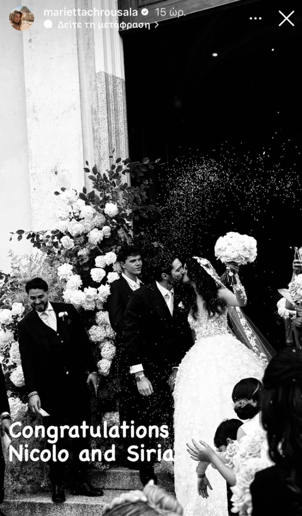 Η Μαριέττα ευχήθηκε στους νεόνυμφους με μία φωτογραφία του ζευγαριού από τη μεγάλη ημέρα. “Συγχαρητήρια Νίκολο και Σίρια”, έγραψε η επιχειρηματίας.