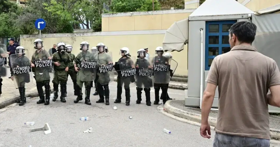 Επεισόδια σημειώθηκαν έξω από το υπουργείο Μεταφορών και Υποδομών μεταξύ των αστυνομικών δυνάμεων και των ιδιοκτητών ταξί.