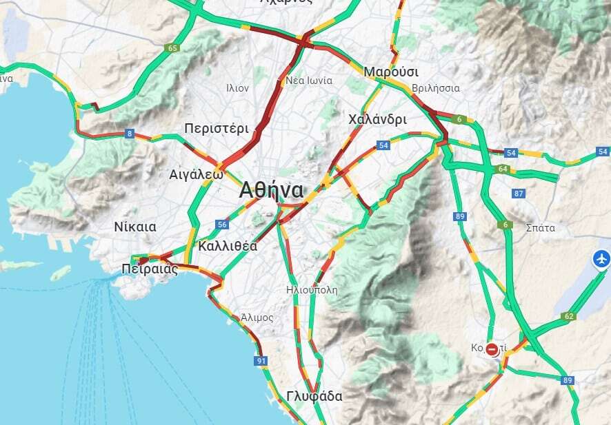 Επίσης, αυξημένη κίνηση καταγράφεται στον Κηφισό, καθώς και στη Λεωφόρο Αθηνών από το Χαϊδάρι με κατεύθυνση προς τα ναυπηγεία Σκαραμαγκά.