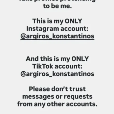 Συγκεκριμένα, ο Κωνσταντίνος Αργυρός, προειδοποίησε τους θαυμαστές του λέγοντάς τους ότι κυκλοφορούν πολλά ψεύτικα προφίλ στα social media που παριστάνουν ότι είναι εκείνος.