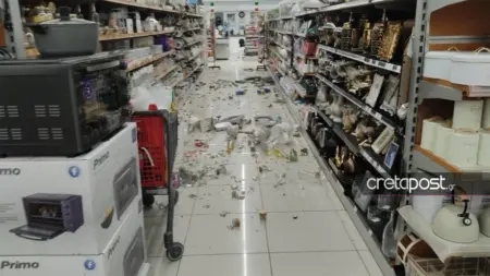 Ακόμη, προϊόντα έπεσαν από τα ράφια των σούπερ μάρκετ, προκαλώντας ζημιές.