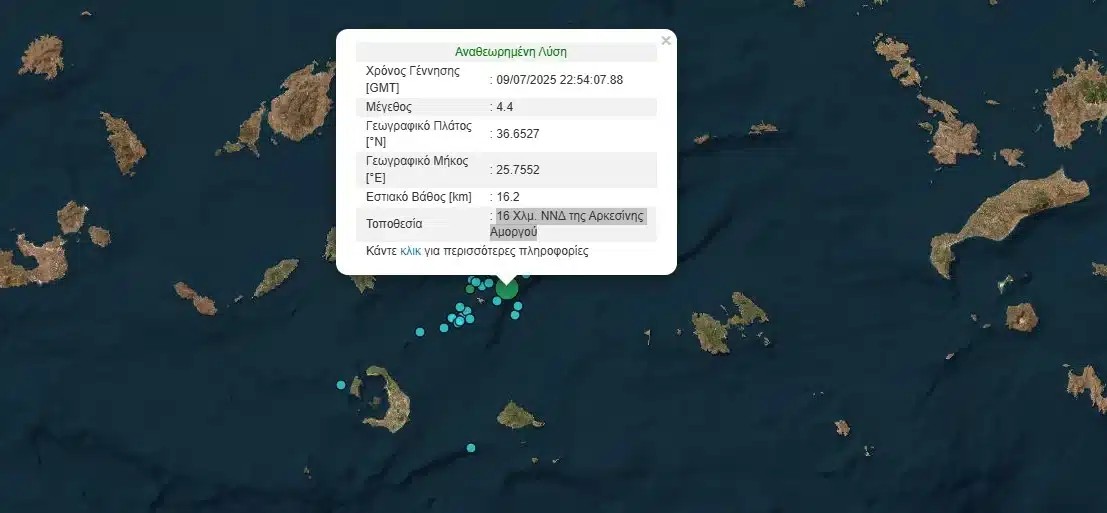 Σεισμός τώρα: 4,4 ρίχτερ στην Αρκεσίνη Αμοργού
