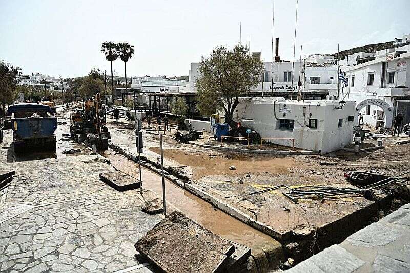 Στη Μύκονο σημειώθηκε μεγαλύτερος όγκος βροχής σε σύγκριση με την Πάρο, αλλά το νησί δεν παρουσιάζει την ίδια εικόνα καταστροφών. Χθες, η Μύκονος κηρύχθηκε σε κατάσταση έκτακτης ανάγκης για διάρκεια ενός μήνα.