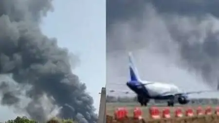 Οι πρώτες εικόνες από το περιστατικό δείχνουν συντρίμμια να καίγονται, και πυκνό μαύρο καπνό να υψώνεται στον ουρανό κοντά στο αεροδρόμιο.
