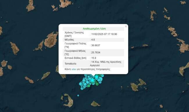 Μάλιστα, πριν από λίγο σημειώθηκε και νέος σεισμός, 4,8 Ρίχτερ, 13 χιλιόμετρα νοτιοδυτικά της Αρκεσίνης Αμοργού.