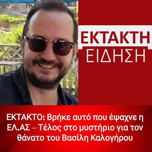 Η μυστηριώδης υπόθεση του Βασίλη Καλογήρου συνεχίζει να απασχολεί τις Αρχές, καθώς νέα στοιχεία έρχονται στο φως, ρίχνοντας φως στις συνθήκες του θανάτου του. Ο 39χρονος είχε εξαφανιστεί για 50 ημέρες πριν βρεθεί νεκρός, και οι έρευνες επικεντρώνονται σε κρίσιμα δεδομένα που μπορεί να αποκαλύψουν τι πραγματικά συνέβη.