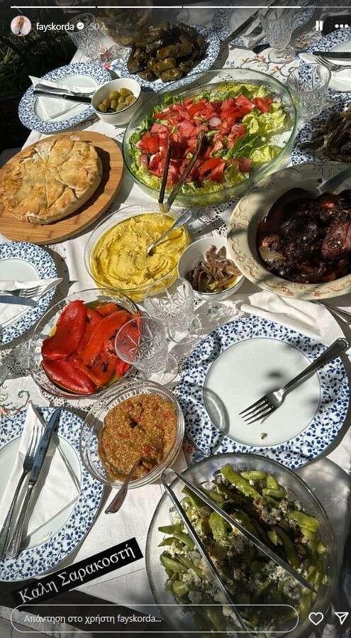 Έτσι λοιπόν, η Φαίη, που είχε και μια ευχάριστη ανακοίνωση να πραγματοποιήσει προ ημερών, είχε τον χρόνο να ξεκουραστεί και δει περισσότερο τα παιδιά της μιας και οι καθημερινές είναι πιεσμένες από άποψη χρόνο τόσο για την ίδια, όσο και για τα δύο αγόρια της, που λατρεύει!Μέσα από αναρτήσεις της Σκορδά στο Instagram είδαμε πως νωρίς το πρωί έβγαλε βόλτα τον αγαπημένο σκύλο του πατέρα της, που πλέον ζει μαζί της. Στη συνέχεια, η παρουσιάστρια μοιράστηκε μια φωτογραφία από το πλούσιο σαρακοστιανό τραπέζι, που θα γευμάτιζε, γεμάτο με όλα τα πιάτα, που είθισται να τρώμε την Καθαρά Δευτέρα.
