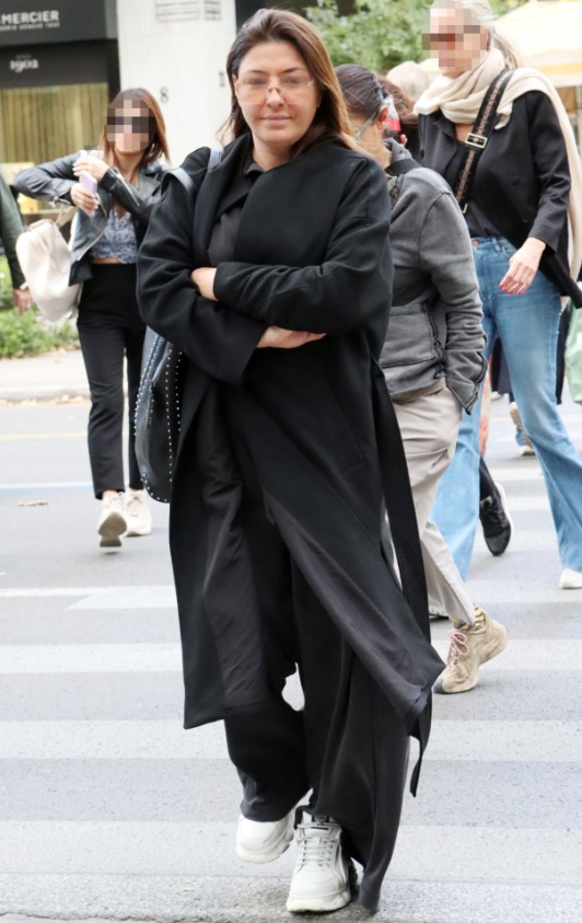 H τραγουδίστρια με casual look περπατούσε σε κεντρικό δρόμο της πρωτεύουσας. Ειδικότερα φορούσε total black: μαύρο παντελόνι, μαύρη μπλούζα και μακρύ μαύρο παλτό, τα οποία συνδύασε με λευκά sneakers.