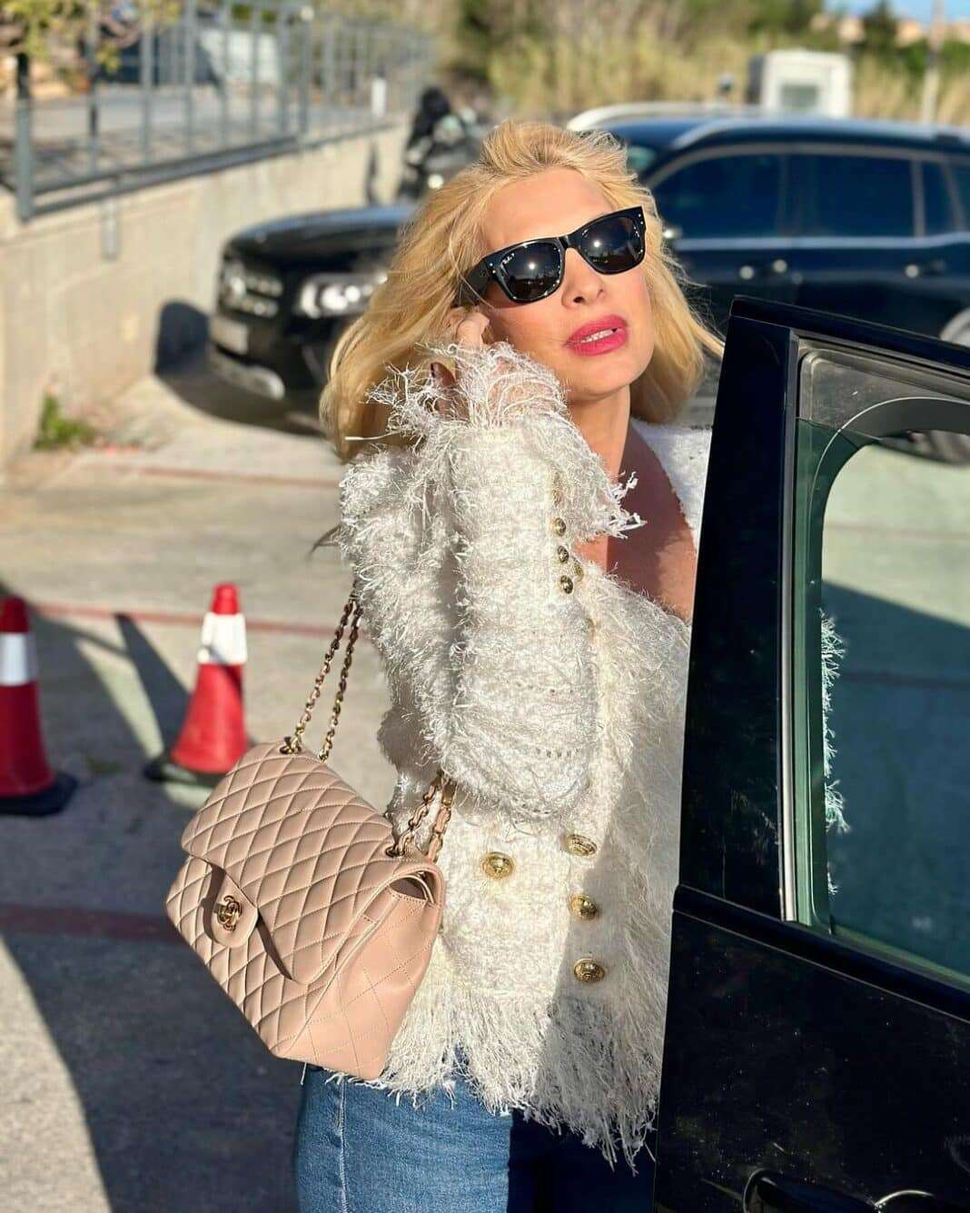 Η Ελένη Μενεγάκη έχει αδυναμία στις περίφημες chain bags του οίκου Chanel και τις επιλέγει συχνά στις εξόδους της.