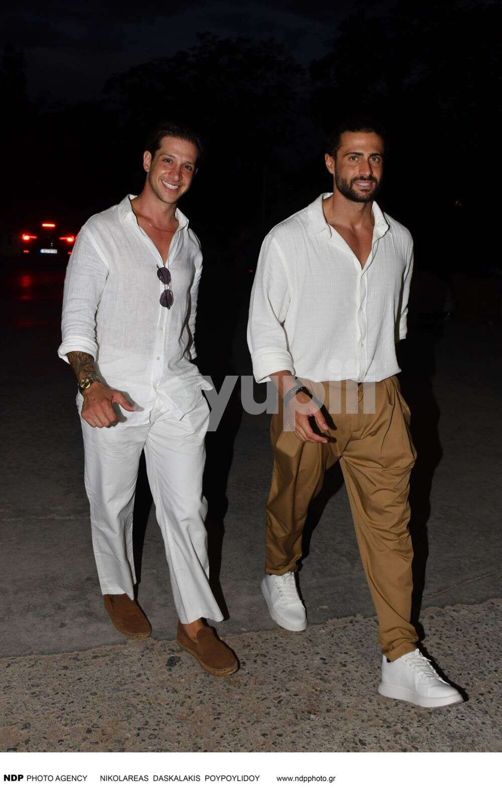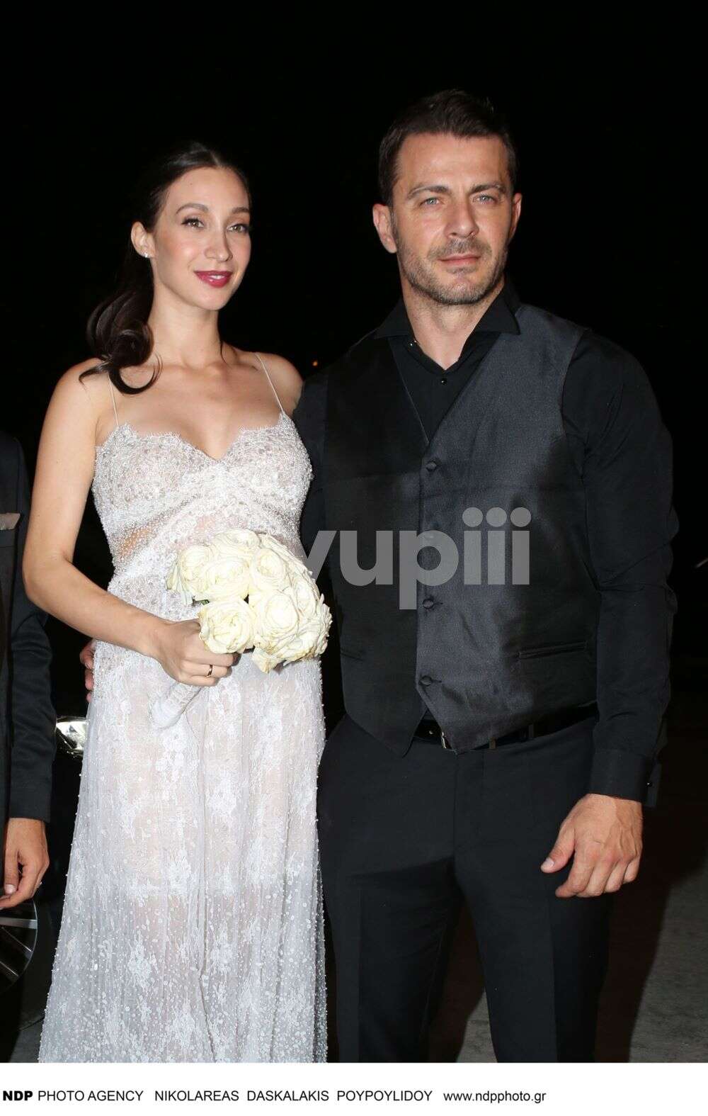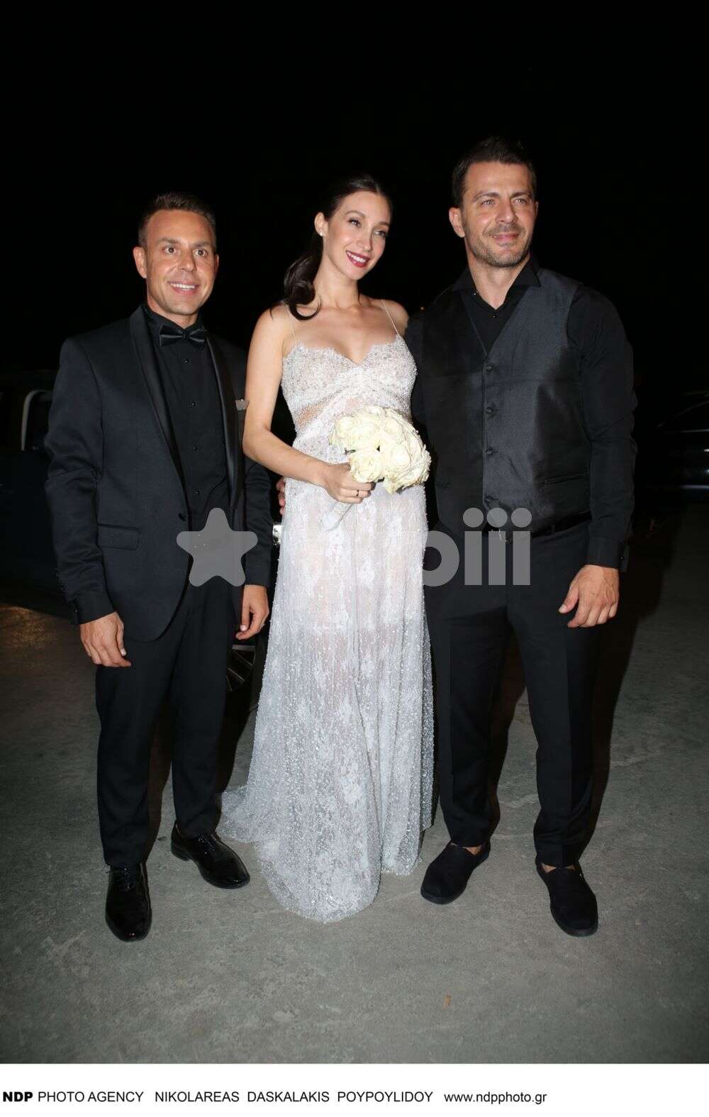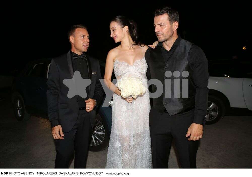 Το ευτυχισμένο ζευγάρι ευχαρίστησε κατά την άφιξή του τους δημοσιογράφους που «κάλυψαν» τον γάμο τους και φωτογραφήθηκαν μαζί. Στο πλευρό τους και ο κουμπάρος τους Αναστάσιος Ντούγκας, ο οποίος τυγχάνει να είναι και ο πιο έμπιστος άνθρωπός τους.