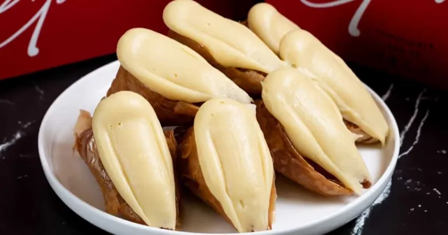 Τα τρίγωνα από φύλλο ψήνονται μέχρι να ροδίσουν, βυθίζονται σε κρύο σιρόπι που αποτελείται από ζάχαρη και νερό και στη συνέχεια γεμίζονται με την κρύα κρέμα. Τα τρίγωνα συχνά γαρνίρονται με ψιλοκομμένους ξηρούς καρπούς πριν από την κατανάλωσή τους», περιγράφει το Taste Atlas.
