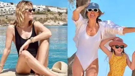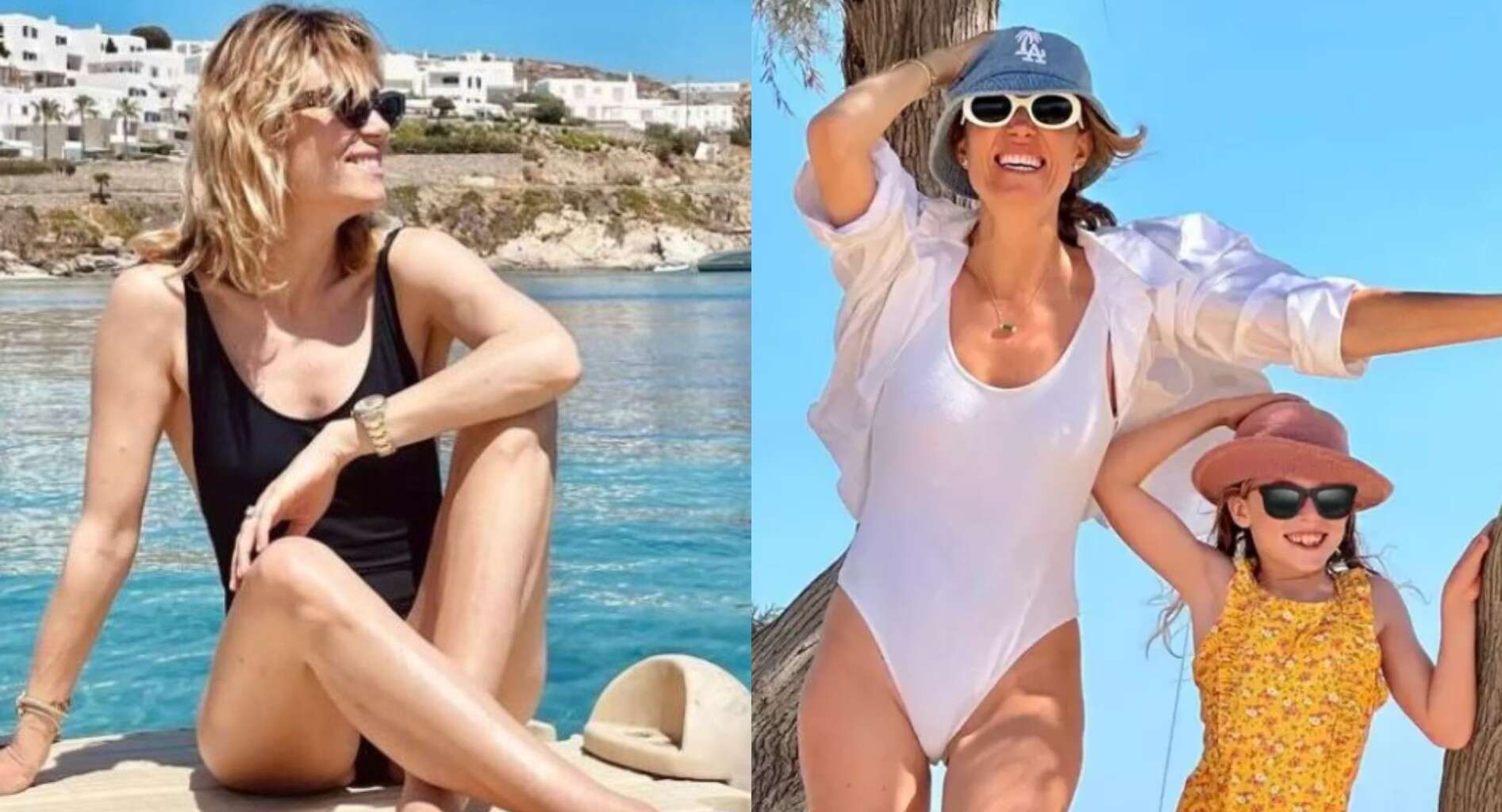Η παρουσιάστρια επέλεξε ένα λευκό ολόσωμο μαγιό ενώ η κόρη της φλοράλ.