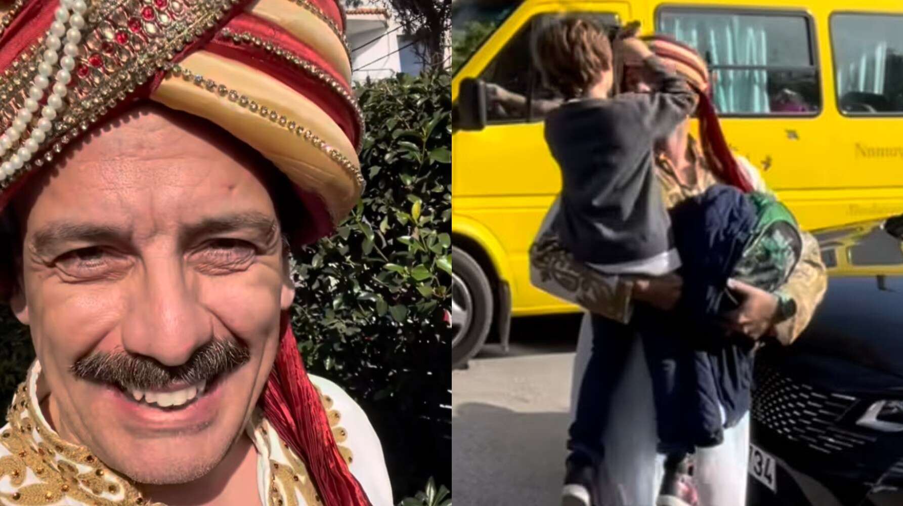 Αυτός ήταν ο λόγος που οι διαδικτυακοί του φίλοι ξαφνιάστηκαν όταν πριν μερικές ώρες, ο αγαπημένος τους, Τόνι Σφήνος, ανήρτησε βίντεο που τον δείχνει ντυμένο μαχαραγιά, όσο περιμένει να παραλάβει τον έναν από τους δύο γιους του.