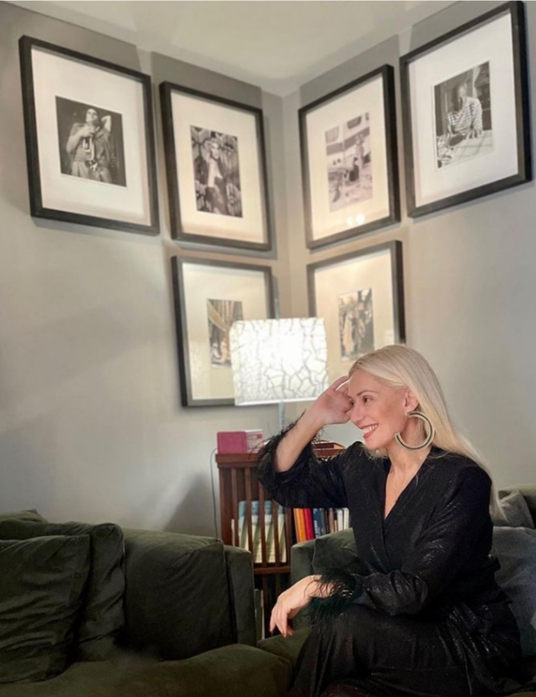 Όπως θα δείτε και στις εικόνες, στο εσωτερικό του σπιτιού κυριαρχούν τα έργα τέχνης και οι φωτογραφίες στους τοίχους, πάντα με το καλόγουστο στυλ και διακόσμηση της παρουσιάστριας.