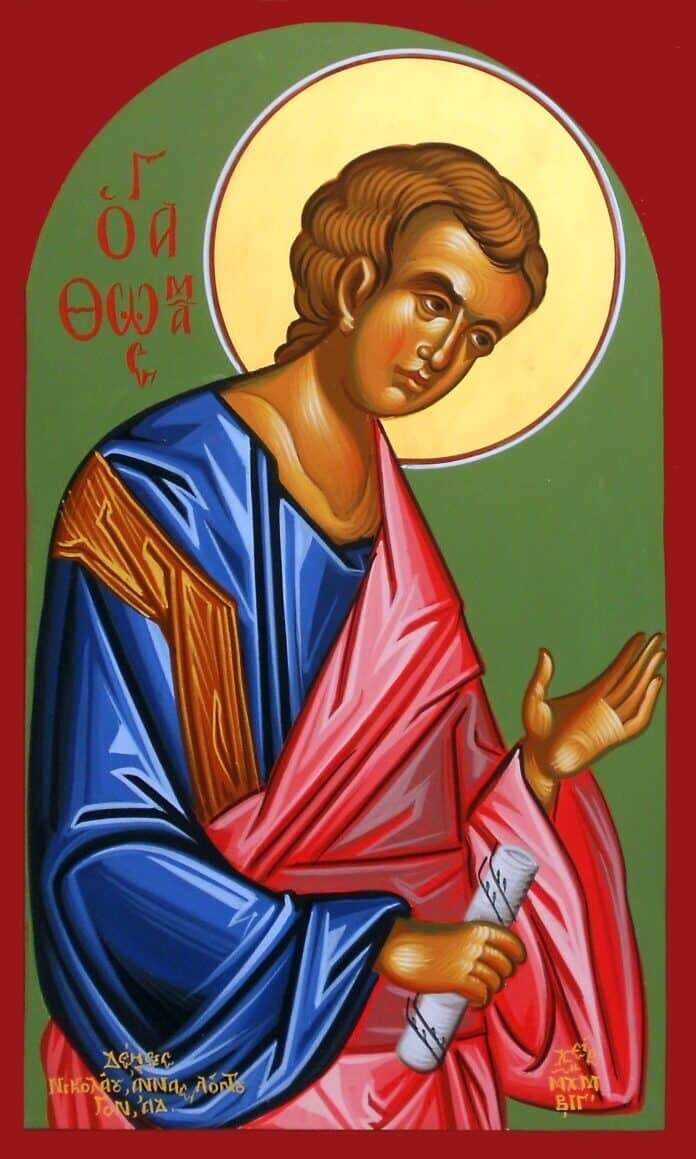 Ο Άγιος Θωμάς ο Απόστολος ήταν μεταξύ των δώδεκα μαθητών του Κυρίου και ανήκε σε οικογένεια αλιέων. Ο Θωμάς, λοιπόν, μετά την Ανάσταση του Χριστού και την πρώτη εμφάνισή Του στους μαθητές, δυσπιστούσε σ’ αυτά που του έλεγαν αυτοί.
