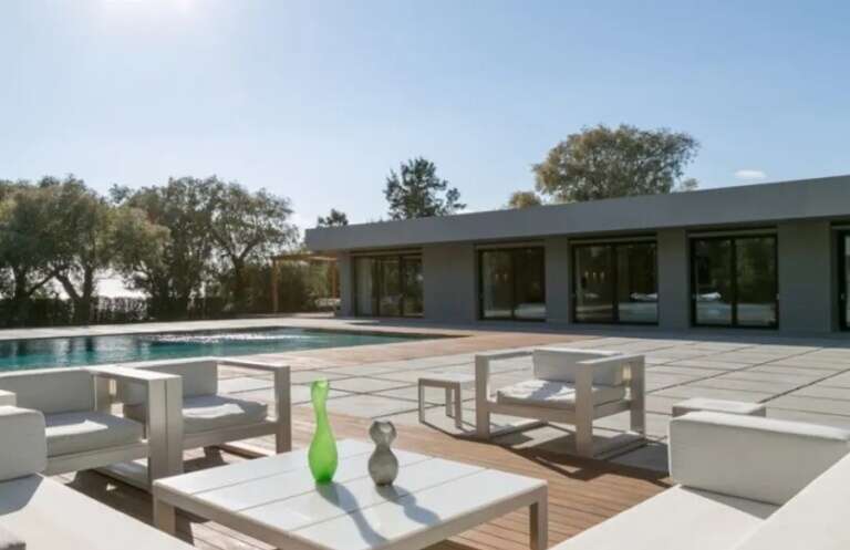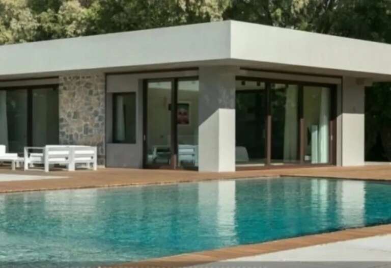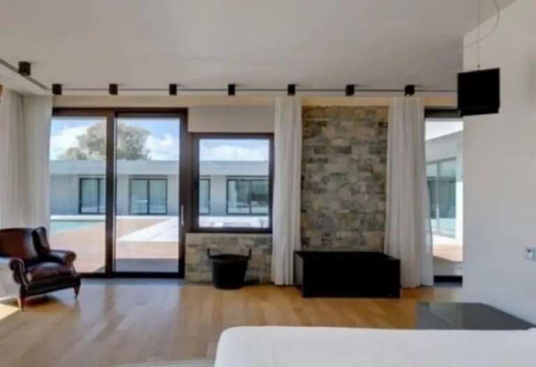 Η πολυτελής βίλα διαθέτει μεγάλο καθιστικό, επτά μάστερ κρεβατοκάμαρες, εκ των οποίων δύο σουίτες, playroom και γυμναστήριο με χαμάμ. Στον εξωτερικό χώρο, περιλαμβάνει εκκλησάκι, πλήρως εξοπλισμένο μπάρμπεκιου, τραπεζαρία με μαρμάρινο πάγκο και ένα βοηθητικό κτίσμα με δύο ακόμη υπνοδωμάτια για το προσωπικό.