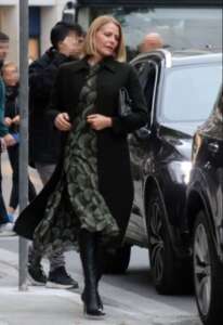 Η Τζένη Μπαλατσινού επέλεξε για τη βόλτα της ένα εμπριμέ φόρεμα σε πράσινους τόνους. Το ρούχο έχει την υπογραφή των Deux Hommes. Οι Γρηγόρης Τριανταφύλλου και Δημήτρης Αλεξάκης, είναι οι Deux Hommes. Μάλιστα είναι από τους αγαπημένους σχεδιαστές της συζύγου του υπουργού. Από πάνω πρόσθεσε ένα chic μαύρο παλτό με γιακά.