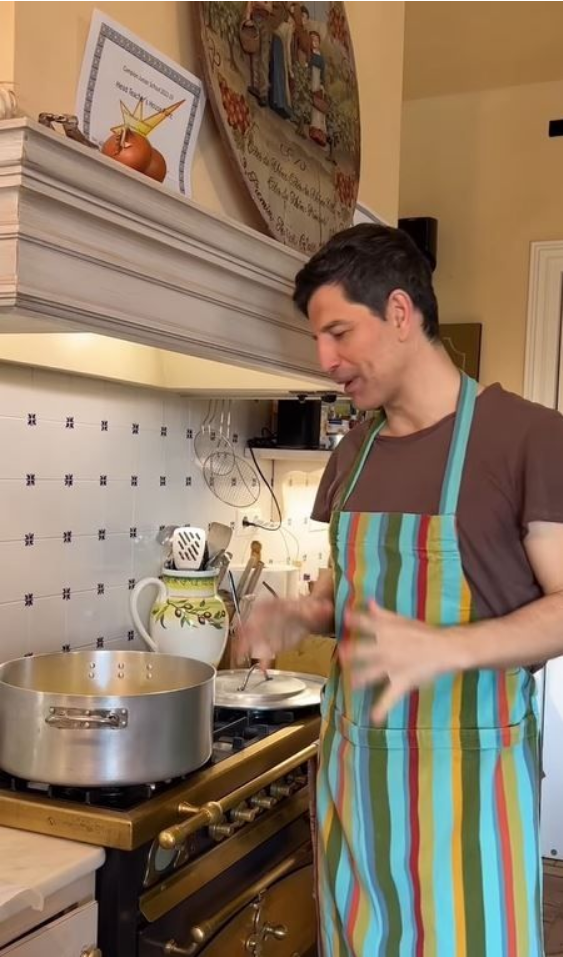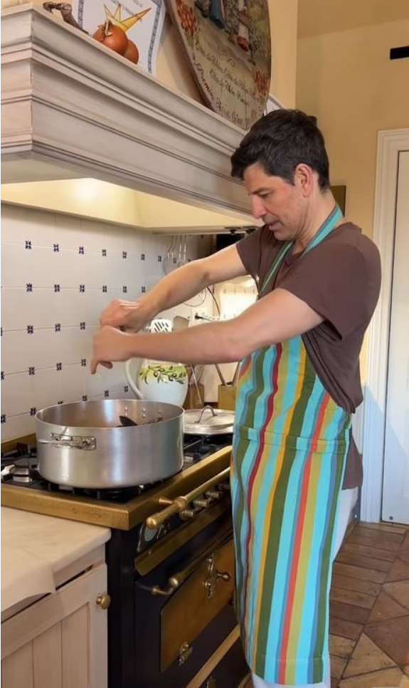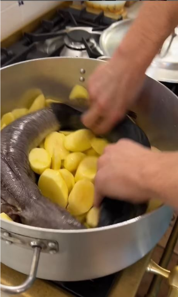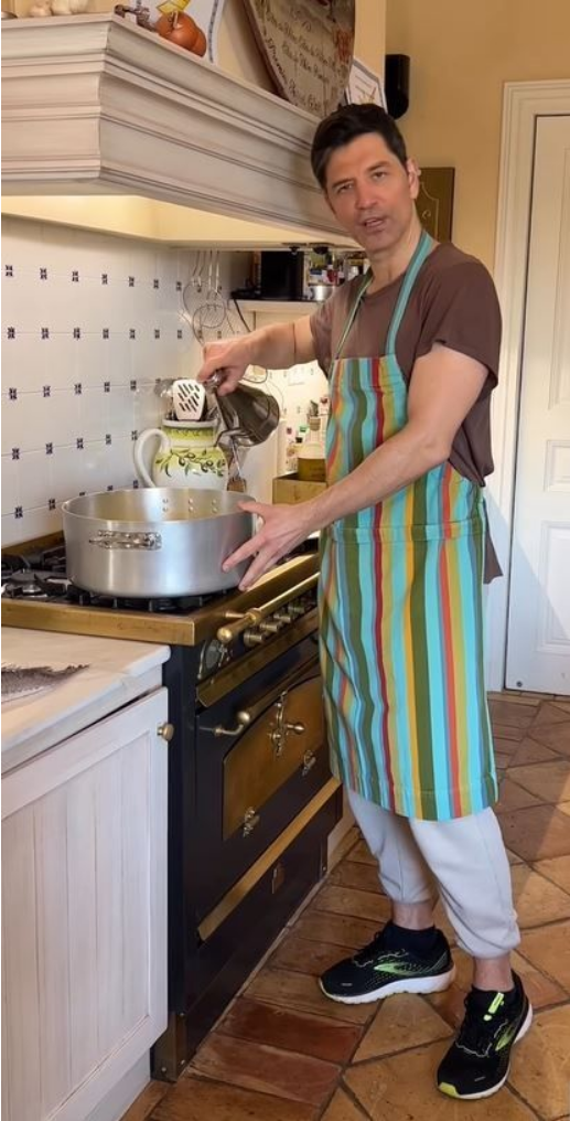 O τραγουδιστής φορώντας μία ριγέ ποδιά για να μη λερωθεί ετοίμασε «Ψάρι Bianco», ώστε να κάνουν μια παύση από τα κρεατικά και μας έδειξε καρέ καρέ την νοστιμότατη συνταγή και στο τέλος έβαλε και λεμόνια από τον κήπο του σπιτιού του.