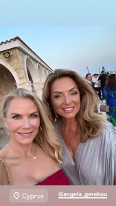 Η Κάθριν Κέλι Λανγκ, που έγινε γνωστή ως Μπρουκ στην “Τόλμη και Γοητεία”, ήταν καλεσμένη στον γάμο του Ανδρέα Γεωργίου και της Σιμώνης Χριστοδούλου, χθες, Κυριακή, στην Κύπρο και μάλιστα η ηθοποιός βγήκε σέλφι με την Άντζελα Γκερέκου.