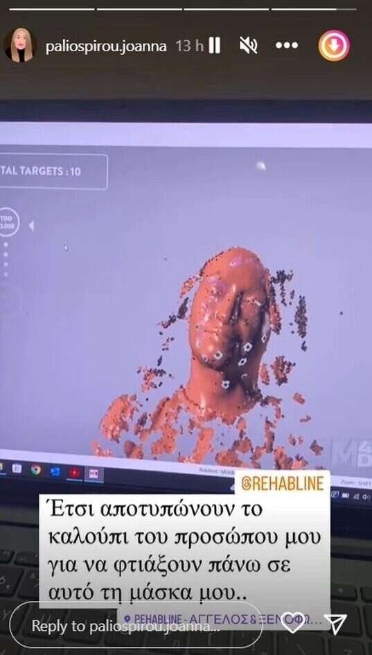 Πιο συγκεκριμένα, έδειξε στους ακόλουθούς της το εργαλείο με το οποίο αποτυπώνει η γιατρός το καλούπι για να φτιαχτεί τη μάσκα ακριβώς στα μέτρα του προσώπου της, αλλά και την οθόνη του υπολογιστή με ό,τι καταγράφει το εν λόγω εργαλείο.