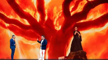 Η ελληνική συμμετοχή με την Klavdia και το τραγούδι «Αστερομάτα» ετοιμάζεται να κλέψει τις εντυπώσεις, αλλά η πραγματική «παράσταση» δόθηκε ήδη στην εκπομπή του MEGA, όταν ο παρουσιαστής… εμφανίστηκε στη σκηνή του διαγωνισμού δίπλα στην Klavdia, χάρη στην τεχνολογία των green screens και των θρυλικών του γραφικών.