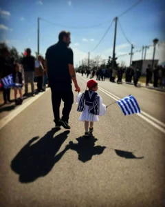 Ο πετυχημένος σεφ παρακολούθησε την παρέλαση με την οικογένειά του, ενώ ο γιος της ντύθηκε τσολιάς, τιμώντας έτσι την ημέρα της μεγάλης εθνικής γιορτής.