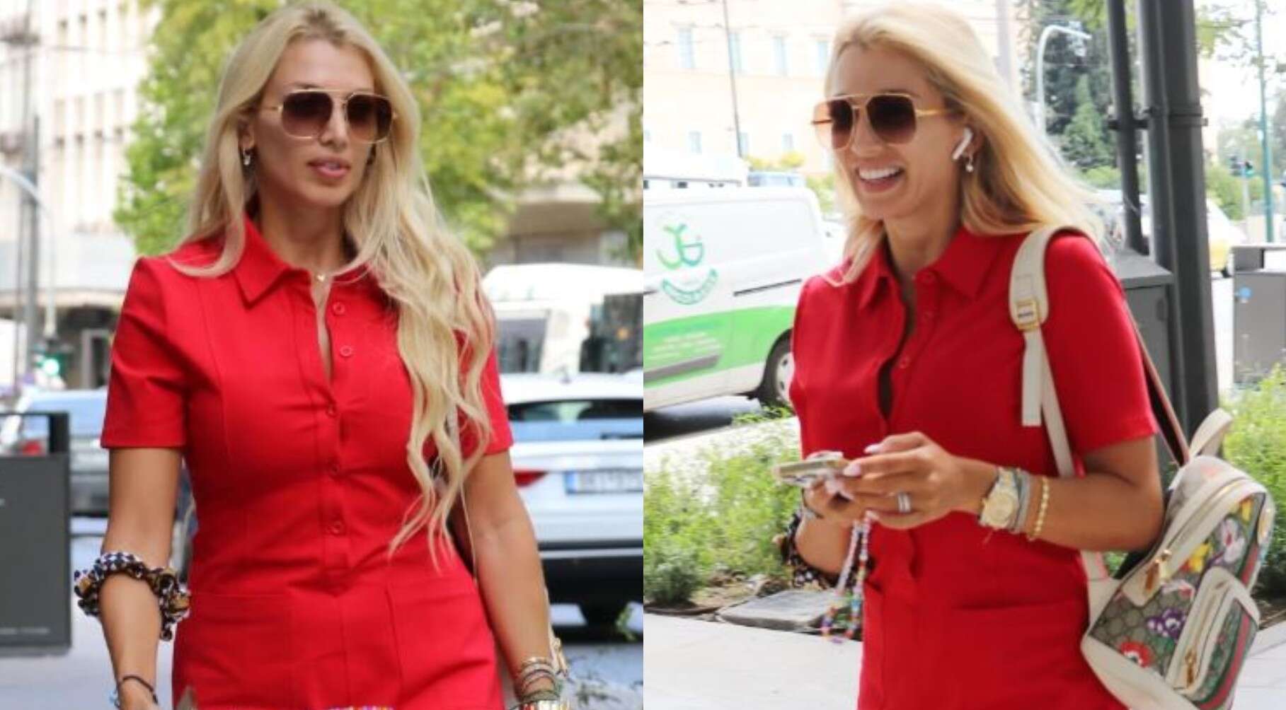 Πρόσφατα, ο φωτογραφικός φακός απαθανάτισε την Κωνσταντίνα Σπυροπούλου σε βόλτα της στην Αθήνα με chic casual στυλ. Πιο συγκεκριμένα, η παρουσιάστρια επέλεξε ένα mini κόκκινο φόρεμα με γιακά. Τι συνδύασε με backpack με εμπριμέ prints με την υπογραφή του οίκου Gucci. Μάλιστα, το σύνολο ολοκλήρωσαν τα sneackers που επέλεξε, από τον ίδιο οίκο.