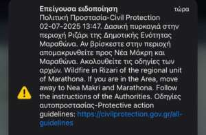 Φωτιά Μαραθώνα στην περιοχή Παραλία: Μήνυμα του 112 για εκκένωση – Η φωτιά καίει σε καλαμιές και σε χαμηλή βλάστηση κοντά σε σπίτια και επιχειρήσεις