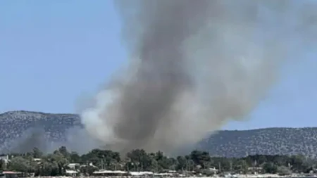 Φωτιά εκδηλώθηκε το μεσημέρι της Τετάρτης (02.07.2025) στην περιοχή Παραλία του Μαραθώνα.