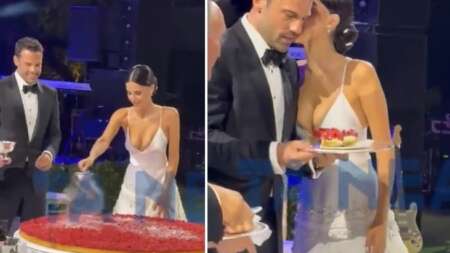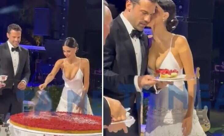 Μια από τις ρομαντικές στιγμές, ήταν η κοπή της τεράστιας τούρτας cheesecake, η οποία είναι trend στα social media. Έπειτα ακολούθησε ο χορός τους, με τους καλεσμένους να χειροκροτούν.