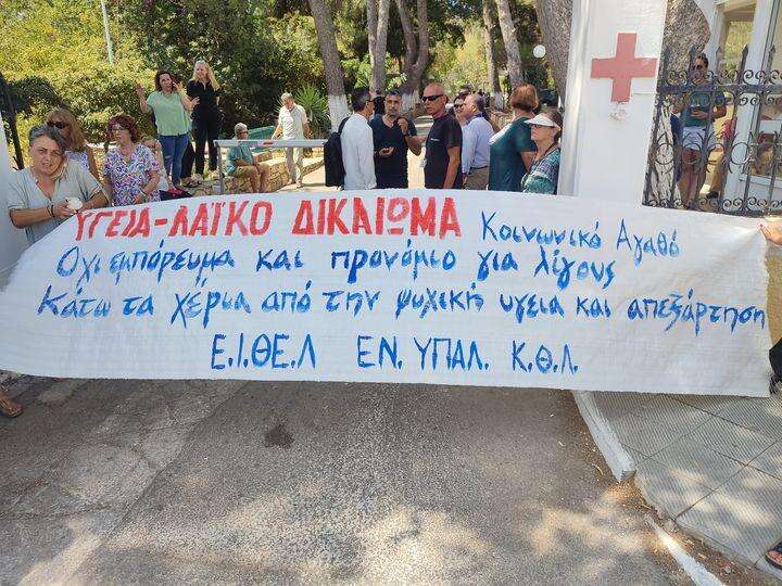 «Υγεία – Λαϊκό δικαίωμα. Κοινωνικό αγαθό. Όχι εμπόρευμα και προνόμιο για λίγους. Κάτω τα χέρια από την Ψυχική Υγεία και την απεξάρτηση», έγραψαν σε πανό που κρατούσαν έξω από το νοσοκομείο της Λέρου υγειονομικοί.