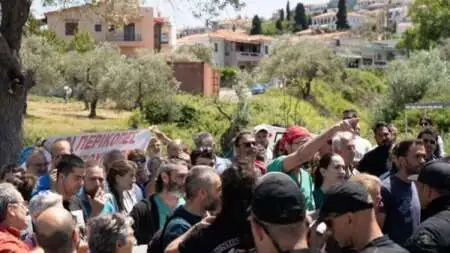 Στο σημείο όπου πραγματοποιήθηκε η τελετή των εγκαινίων των νέων εγκαταστάσεων του ΕΚΑΒ Μυτιλήνης, παρουσία Γεωργιάδη, βρέθηκαν διαδηλωτές – εργαζόμενοι των δημόσιων δομών Υγείας της Λέσβου, καθώς και μέλη του Εργατικού Κέντρου, οι οποίοι φώναζαν συνθήματα κατά της πολιτικής της κυβέρνησης.