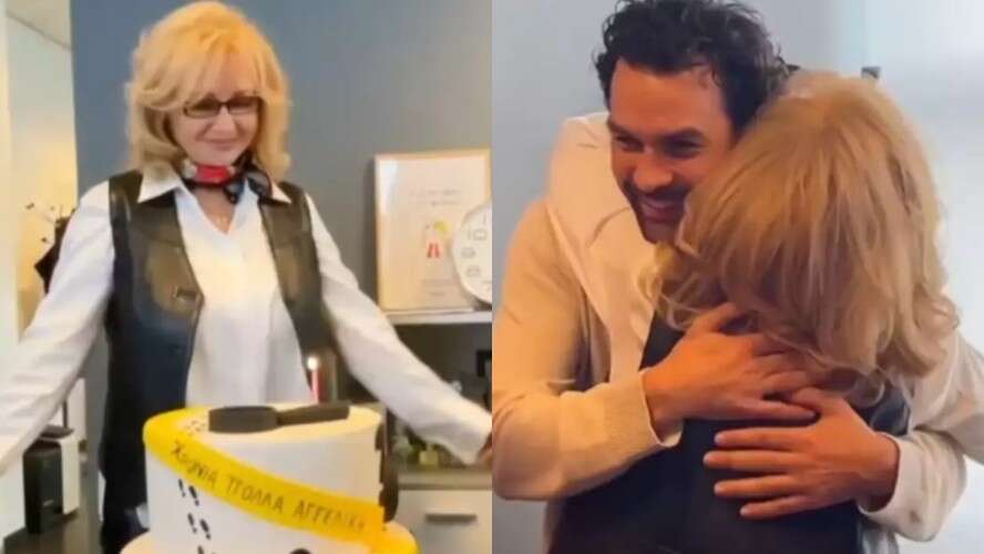 Την ώρα λοιπόν που η Αγγελική Νικολούλη μπήκε στο γραφείο της, είδε να την περιμένουν όλοι οι συνεργάτες μαζί με τον γιο της, και μια εντυπωσιακή τούρτα.