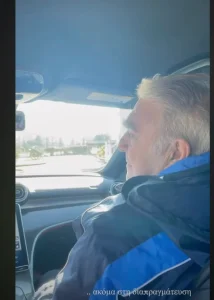 Η τραγουδίστρια ετοιμάζεται να πάει βόλτα με το αυτοκίνητο. Η ίδια κάθεται στη θέση του οδηγού, ενώ δίπλα της κάθεται ο Πασχάλης Τερζής.