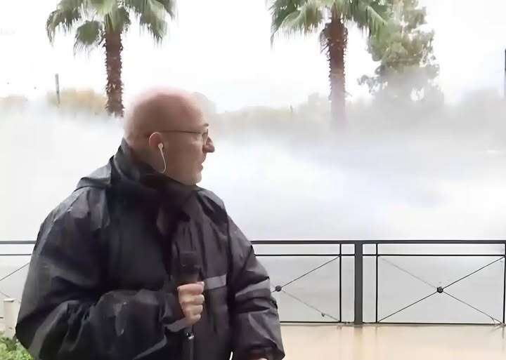 Ο γνωστός ρεπόρτερ ενώ κατέγραφε στην Ποσειδώνος τον δρόμο που γέμισε νερά, ένα τζιπ με μεγάλη ταχύτητα έριξε ένα κύμα νερού πάνω του