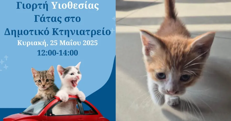 Ελάτε να γνωρίσετε από κοντά τα γατάκια του Δημοτικού Κτηνιατρείου, να μάθετε την ιστορία τους και – γιατί όχι – να ανοίξετε την καρδιά και το σπίτι σας σε ένα από αυτά. Φέρτε την οικογένειά σας, τους φίλους σας ή απλώς την καλή σας διάθεση, και γίνετε μέρος αυτής της ζεστής, φιλοζωικής ημέρας.