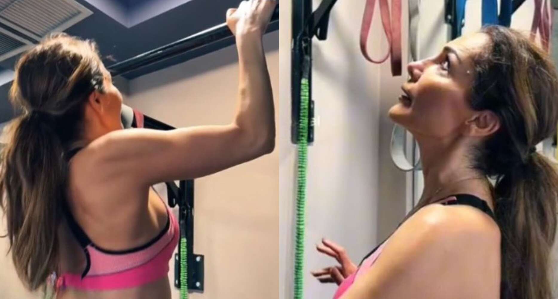 Συγκεκριμένα, η ίδια φαίνεται να κάνει με μεγάλη ευκολία μονόζυγο, αλλά μόλις το πλάνο ανοίγει διαπιστώνεται πως έχει βοήθεια αφού ο γυμναστής της και σύντροφος της κόρης της, Αλέξανδρος Πολυχρονιάδης, της κρατάει τα γόνατα και την σηκώνει.