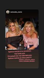 Η φωτογραφία που μοιράστηκε η Δήμητρα Ματσούκα είναι πιθανόν από το πρόσφατο παρελθόν καθώς η ίδια εμφανίζεται με ξανθά μαλλιά. «Χρόνια πολλά στις γυναίκες της ζωής μου, στη μαμά και την αδελφή μου. Χρόνια πολλά σε όλες μας» έγραψε χαρακτηριστικά η Δήμητρα Ματσούκα.