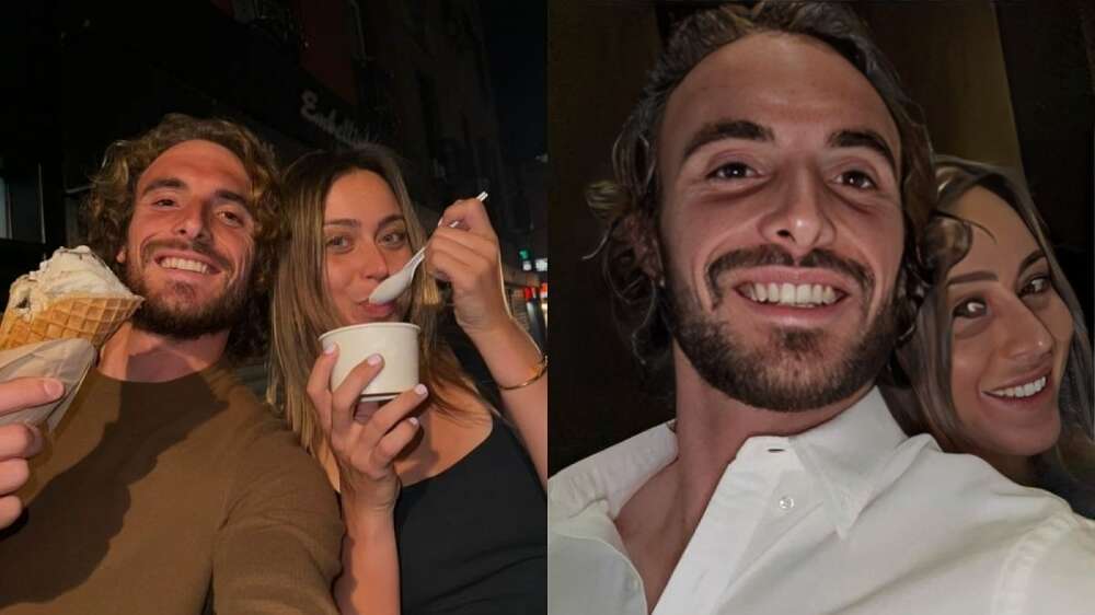 Στο στιγμιότυπο, ο Στέφανος Τσιτσιπάς την τραβάει βίντεο ενώ εκείνη ποζάρει, χωρίς ίχνος μακιγιάζ.